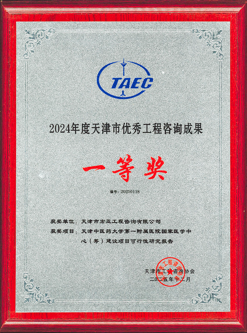 近日,在天津市工程咨詢協(xié)會(huì)第五屆五次會(huì)員大會(huì)暨第五屆理事會(huì)第五次會(huì)議上,天津咨詢所屬宏亞工程咨詢有限公司編制的《天津中醫(yī)藥大學(xué)第一附屬醫(yī)院國家醫(yī)學(xué)中心(籌)建設(shè)項(xiàng)目可行性研究報(bào)告》榮獲2024年度天津市優(yōu)秀工程咨詢成果一等獎(jiǎng),同時(shí)被授予2025年度優(yōu)秀會(huì)員單位榮譽(yù)稱號(hào)。